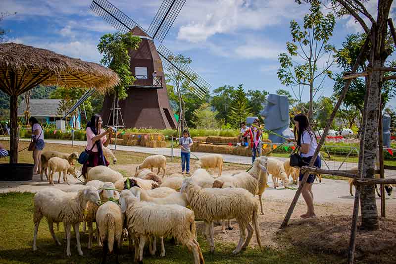 รวมถึงโซนแกะ ที่มีแกะสีขาวกว่า 100 ตัว ในพื้นที่เปิดโล่งขนาดใหญ่ ลูกค้าสามารถเข้าไปป้อนอาหารกับฝูงแกะได้อย่างใกล้ชิดและเป็นมิตร และล่าสุด โซนนกซันคอนัวร์ นกสวยงามแสนเชื่อง ในกรงขนาดใหญ่ที่ให้เพื่อนๆ สามารถเข้าไปภายในกรงเพื่อเล่นกับเหล่านกซันคอนัวร์จำนวนมากอย่างใกล้ชิด ทางฟาร์มมีกิจกรรมป้อนอาหารสัตว์แสนเชื่อง นั่งรถม้าแคระ ขี่ม้าแคระสำหรับเด็ก ศิลปะสำหรับครอบครัว บรรยากาศโดยรอบของฟาร์มมีวิวทิวเขาทอดยาว โดยเฉพาะในฤดูฝนที่มีกลุ่มหมอกสีขาวปกคลุมเทือกเขาตลอดแนวอย่างสวยงาม